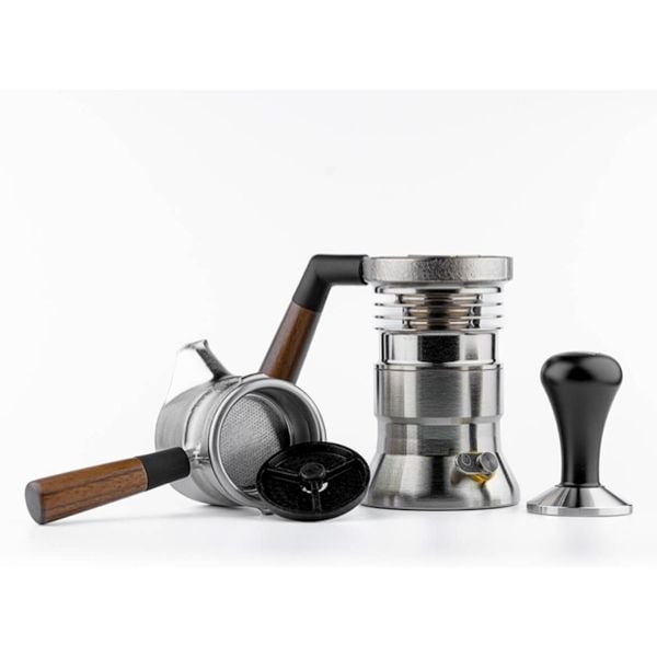 - Độ hoàn thiện tỉ mỉ và chắc chắn: Cầm trên tay bạn sẽ thấy 9Bar vô cùng nặng. Cân nặng khoảng 1,7kg vì các bộ phận đều được đúc từ đồng thau và gia công bằng máy rung, đánh bóng bằng tay. Sau đó, nó được mạ nikel có thể tiếp xúc an toàn với thực phẩm, đồng thời cho bề mặt của 9Barista có độ bóng và cứng hoàn hảo