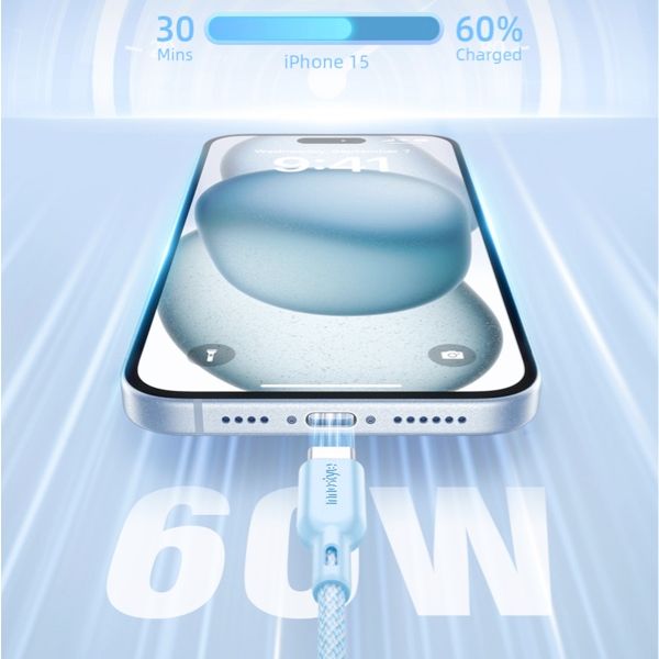 - Sạc nhanh 60W: Sạc iPhone 15 lên 60% hoặc MacBook Air 2022 lên 50% chỉ trong 30 phút.