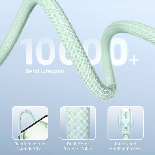 - Thiết kế bền bỉ: Dây cáp bện hai màu thời trang và siêu bền. Đầu nối được gia cố chắc chắn và chiều dài 1.5m lý tưởng cho mọi nhu cầu.