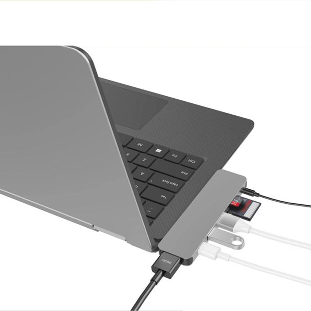 Hỗ trợ 7 cổng kết nối bao gồm 1 cổng HDMI, USB-C với Power Delivery, 2 cổng USB 3.1, microSD, SD, jack âm thanh. Cổng HDMI cho phép xuất video hỗ trợ độ phân giải lên đến 4K, jack 3.5mm để kết nối tai nghe, tương thích với các chuẩn USB phổ biến hiện nay, được trang bị cổng USB-C có thể sử dụng để sạc cho những thiết bị khác. Khe thẻ nhớ SD và microSD giúp mở rộng không gian lưu trữ dữ liệu hay truyền tải dữ liệu từ thẻ nhớ sang thiết bị khác.