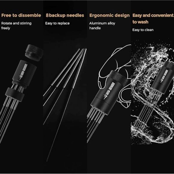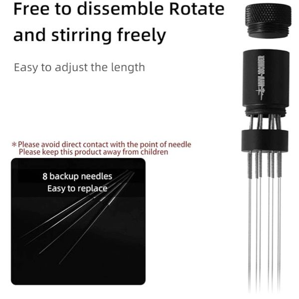 - VẬT LIỆU CAO CẤP: Tất cả các công cụ Phụ kiện máy pha cà phê WDT đều được làm bằng vật liệu chất lượng, 8 kim dự phòng SUS304, tay cầm bằng hợp kim nhôm, cho phép phân phối đồng đều hơn cho cà phê espresso và cà phê nhỏ giọt.