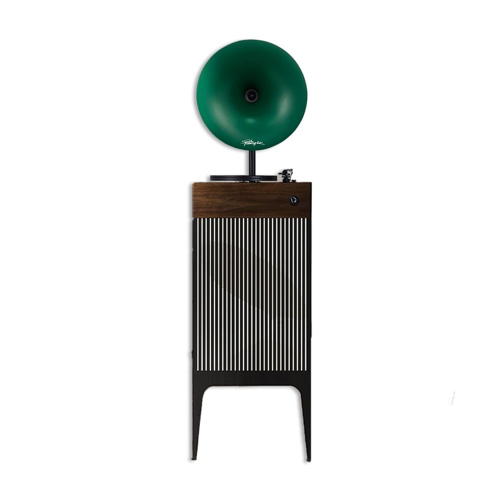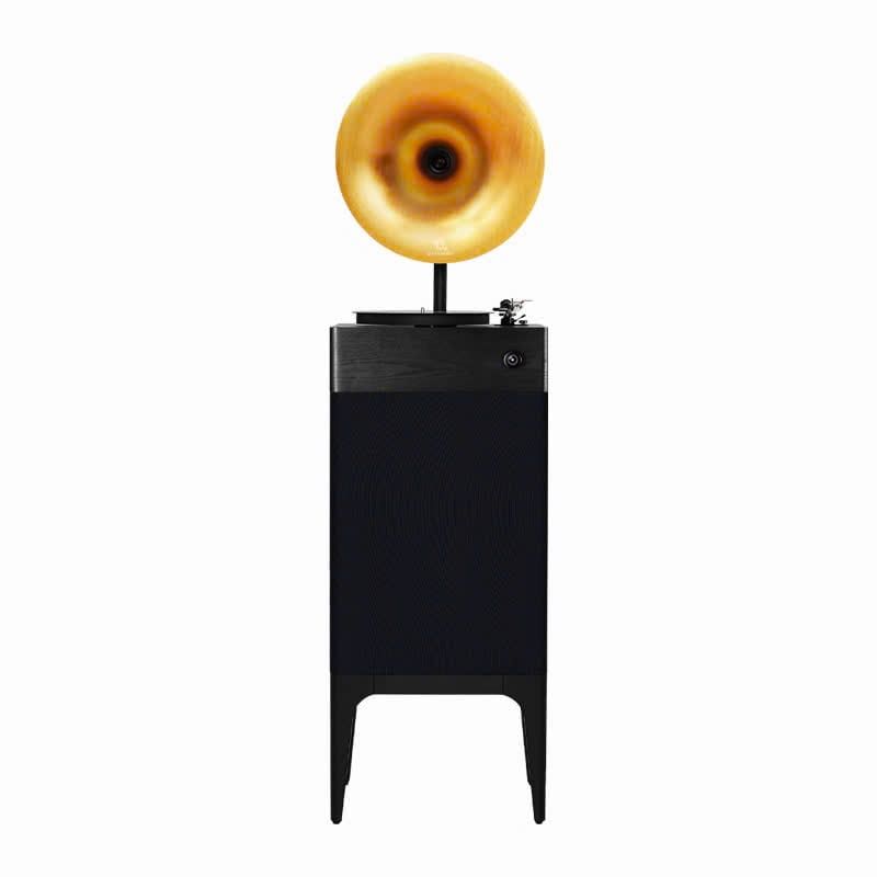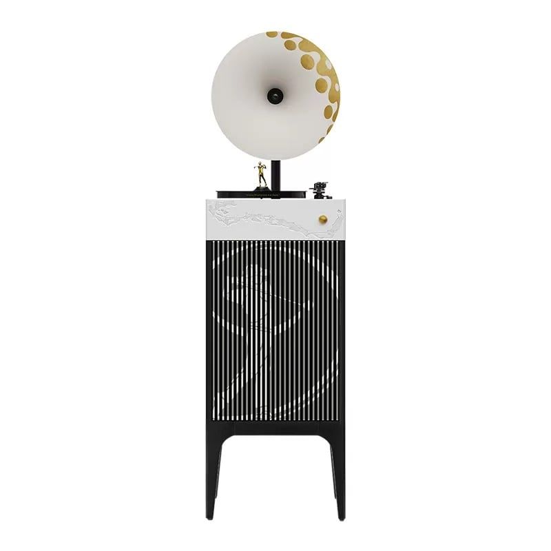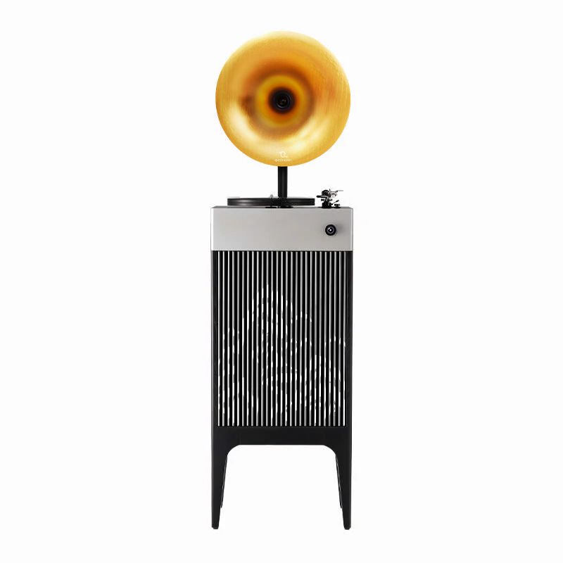 - Thiết kế turntable tích hợp: Đầu kim chính xác, tốc độ 33/45 RPM, với bugle (loa kèn) kim loại phẳng, cổ xoay gập stereo, và thân máy vuông vắn, mượt mà.