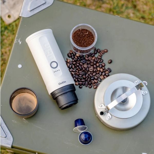 - Outin phù hợp nhất với những người thường xuyên đi camping: Trước đây, họ cần chuẩn bị rất nhiều món đồ để pha ra được ly cà phê thì bây giờ chỉ cần mỗi chiếc máy pha này thôi. Nếu thêm máy xay cầm tay thì hoàn hảo, còn không thì vài viên nên nespresso là qua bài dễ dàng