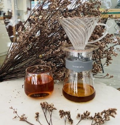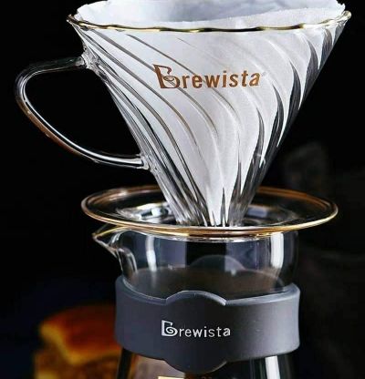 Phễu Lọc Cà Phê V60 Brewista Dripper Thủy Tinh Viền Ánh Vàng – Pour Over Cao Cấp Chính Hãng