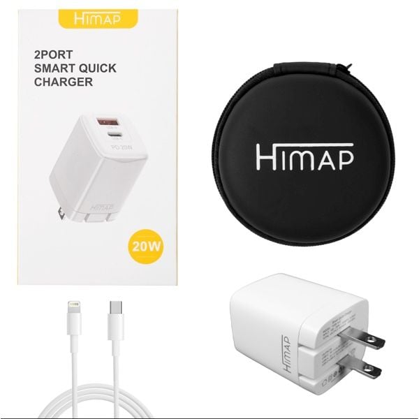 - Cáp: Đi kèm củ sạc có cáp sạc nhanh chính hãng HIMAP Type C to Lightning 20W,1M