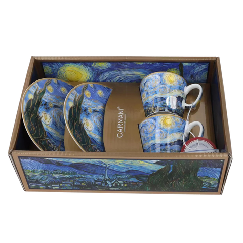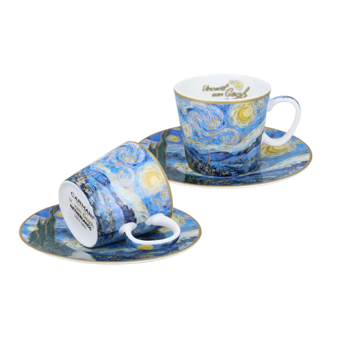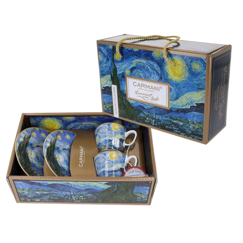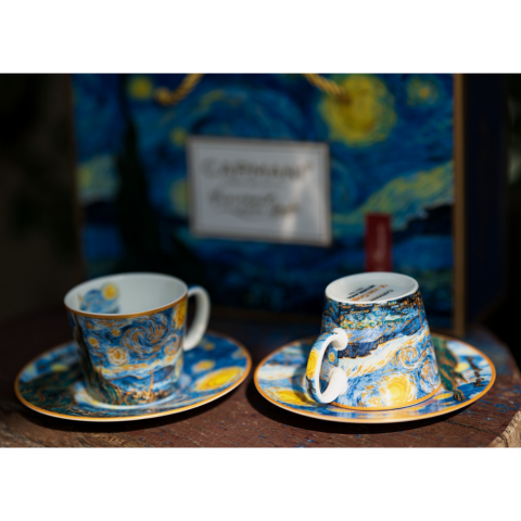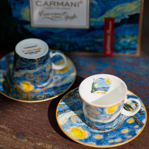 Set 2 ly và đĩa sứ Carmani Set of 2 espresso cups - V. van Gogh Starry night - 100ml